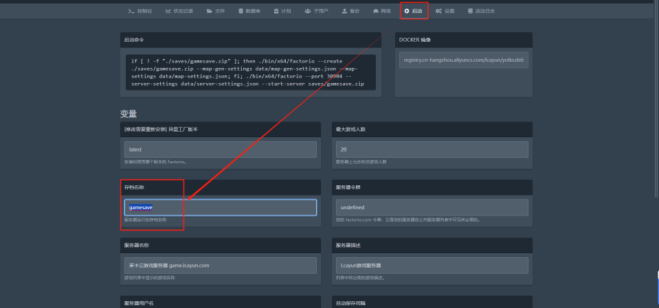 点击启动,将存档名称改为你的存档名称